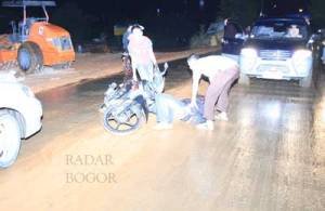 Jalan Campur Tanah Licin, Motor Berjatuhan