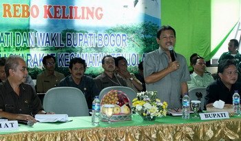 Saat melaksanakan program kegiatan Rebo Keliling (Boling) di desa Tapos II, Kecamatan Tenjolaya, Rabu (23/11). Dalam sesi dialog, salah seorang warga mengeluh kepada Bupati Bogor Rachmat Yasin (RY), mengenai pelayanan rumah sakit yang belum maksimal.