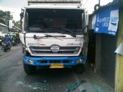 Truk bawa air mineral hilang kendali akibat rem tidak berfungsi dengan baik, sehingga menghantam tujuh mobil Jumat (26/9) . Truk baru berhenti setelah menghantam warung.